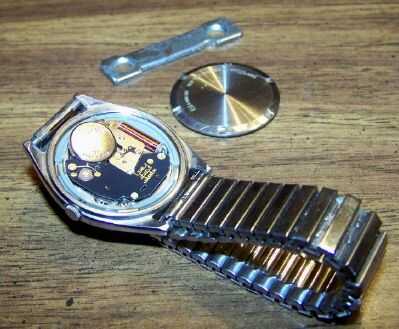 Aquí se puede apreciar la parte posterior de la caja quitada. Reemplace la batería. Asegúrese de volver todas las juntas, etc. en el lugar. Puedes hacer el reverso de la caja en sentido antihorario hasta que usted sienta los hilos caída por lo que hacer no jamba los hilos de rosca Cruz roscado.