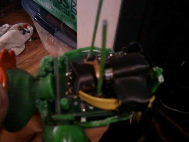 pegué algunos cables a los botones por lo que yo pude hacer clic en ellos a través de los orificios en la cáscara y funcionó bien