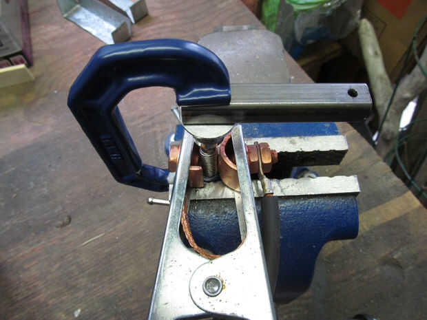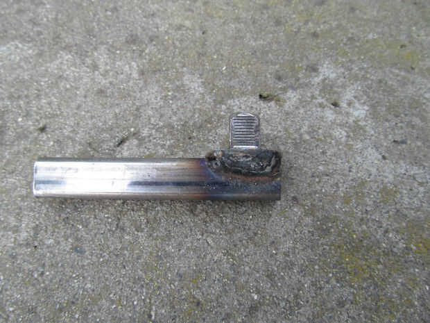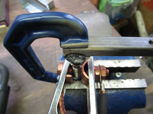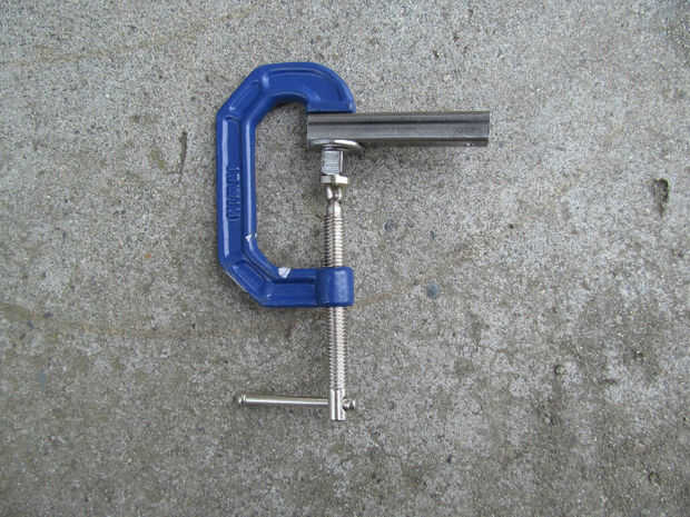 -Posición de la "Chistera" en el extremo del eje que se corta antes. Asegúrese de que esté centrado y en una de las caras con un agujero en ella; Asegúrese de que está en el extremo opuesto del agujero. Sujete en su lugar.