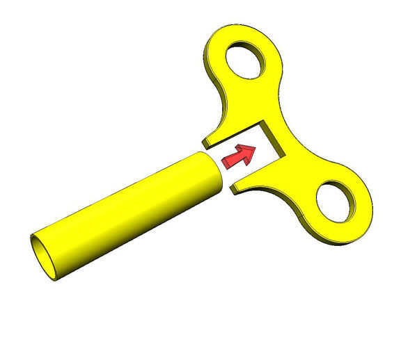 rechaza la pintura en aerosol u otra falsedad. Si usted no se preocupa por la "sensación" de latón, este proyecto funcionaría mucho mejor con cartón, espuma y pintura de aerosol. Sobre el diámetro del motor pude un reloj simple bobina clave en SolidWorks del modelo y la escala para ajustarse al tubo. También hice el espesor de la clave de un número redondo que era proporcional al eje, en este caso 1/2". He proporcionado una escala de 1:2 dibujo de mi clave en formato PDF a continuación.