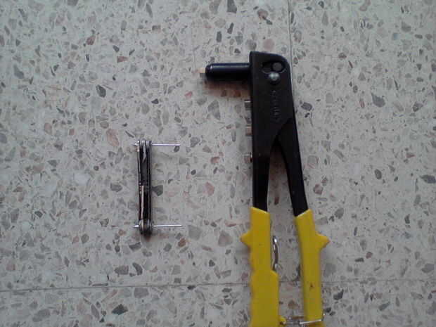 hacer un dos palas plegable navaja hecha de PVC y hoja de sierra.Paso 1: Piezas y herramientas necesarias Para hacer un dos palas plegable navaja necesita 1/2 "pop remache, 2 arandelas y PVC clase 200 de"pared delgada". Tiempo para hacer ap