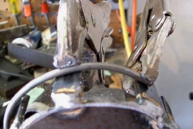 he añadido algunos varilla de 1/8 de pulgada en la parte superior de las pestañas para evitar flexión y apertura en uso un montón de esfuerzo de torsión se debe aplicar para quitar un filtro difícil. Doblado la barra para ajustar el contorno de las pestañas. Usé pinzas con seguro para fijar la varilla de 1/8 de pulgada hasta que pudiera virar soldar la varilla a cada pestaña. Luego he quitado las pinzas y había acabado de las soldaduras. Tenga muy cuidado de no soldar sus pinzas a la varilla de 1/8 de pulgada.