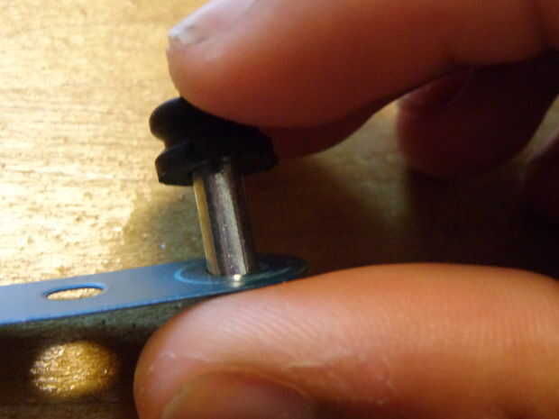 A continuación, haz dos de los espaciadores de goma gruesos. Empujar hacia abajo en los tornillos tan lejos abajo como se van. Asegúrese de hacerlo en ambos lados!