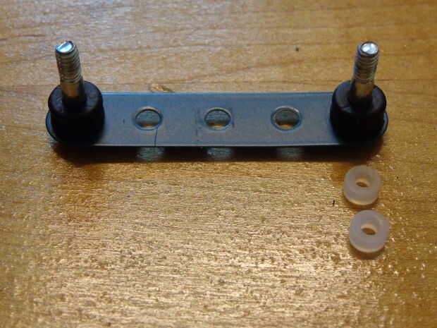 Ahora, conseguir a tus dos espaciadores de goma claro. Presione ambos en el tornillo derecho. Asegúrese de que están abajo tan ajustadamente como sea posible.