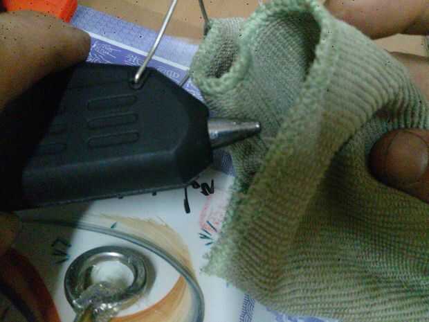 Utilizar pegamento caliente para hacerla más robusta y también cubriendo el borde afilado de la misma. Dispara poco de pegamento en la articulación, luego forma con el metal caliente de la pistola sea bola forma o forma cuadrada.