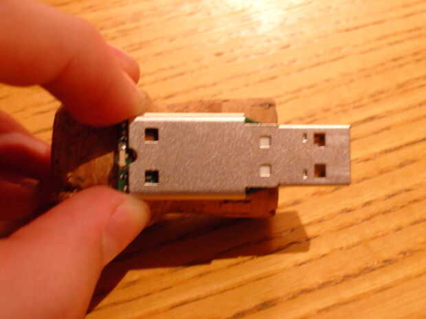 Ahora con el USB pelado necesita a la medida para arriba con su corcho para asegurarse de que es ancho y bastante profundo.