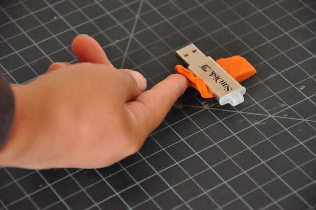(Es bueno probarlo en tu ordenador en esta etapa). Envuelva la arcilla alrededor de la llave USB y lisas en forma cuadrada.
