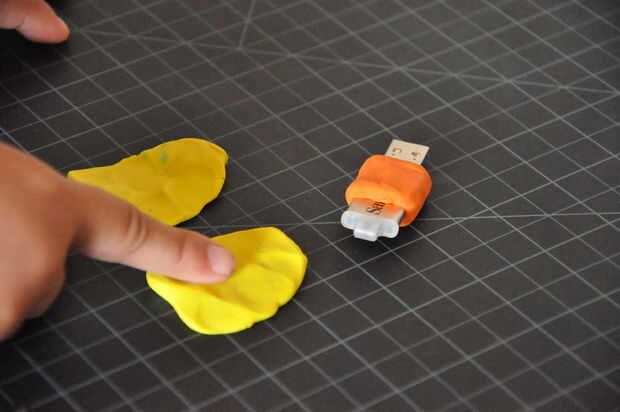 Poner una forma de campana a cada lado de la llave USB por debajo de la cabeza naranja.