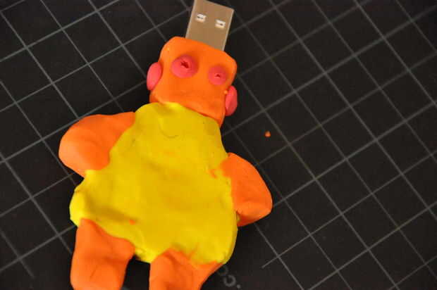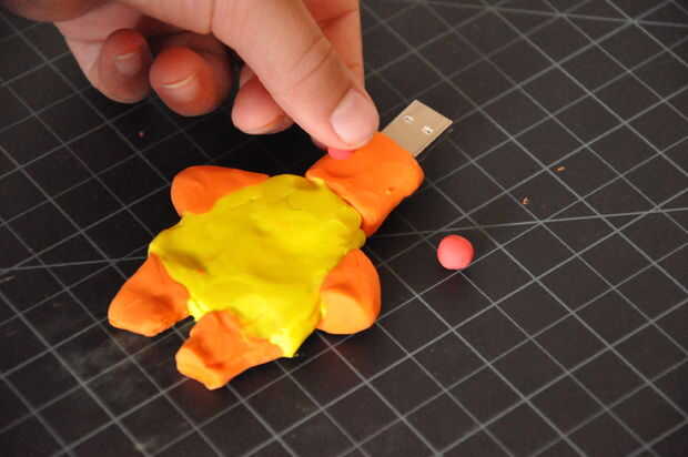 Para oídos del robot, hacer una bola redonda más grande y cortar por la mitad para hacer dos orejas.