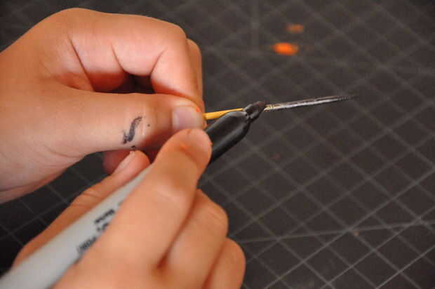 Tomar su marcador Sharpie y su palillo de dientes de color negro todo.