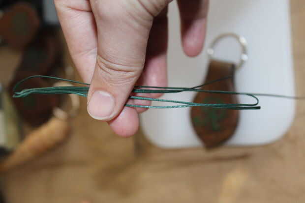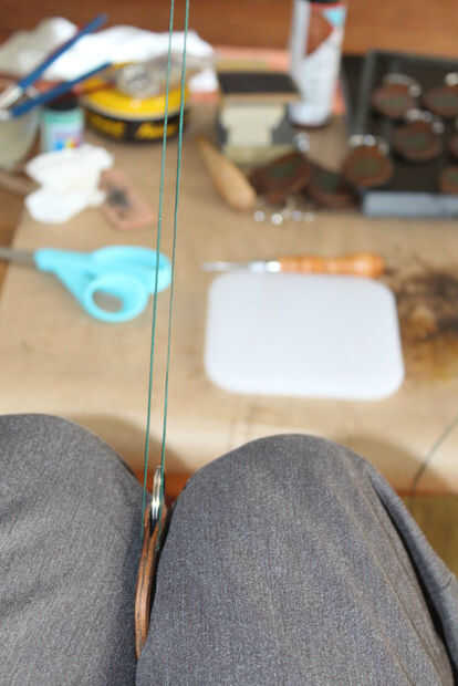 Una vez terminado coser tomar el mazo y ligeramente golpee ligeramente el hilo hacia abajo para que se sientan muy bien, en la ranura utilizar algunos desechos como un búfer si es necesario. Luego tomar la rueda de costura que se utiliza para marcar los agujeros y ejecutarlo sobre el hilo, esto le dará los hilos una mirada contorneada agradable en lugar de ser plana.