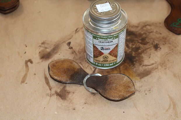 Ahora instale el anillo de clave y pegue los lados junto con cemento de contacto. Unte cada lado con el cemento y se deja reposar unos minutos hasta que quede casi seca o pegajosa. Cuidadosamente Alinee los lados y ligeramente les pegan. Si presiona duro y desastre es muy difícil de separar. Una vez que se alinea para arriba correctamente Presione duro y usar el mazo con un trozo como un buffer para golpear ligeramente la pieza de. Esto establece el pegamento y es casi imposible conseguir aparte.