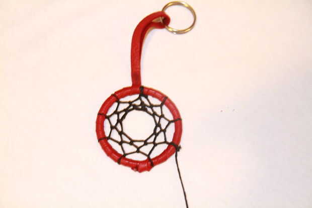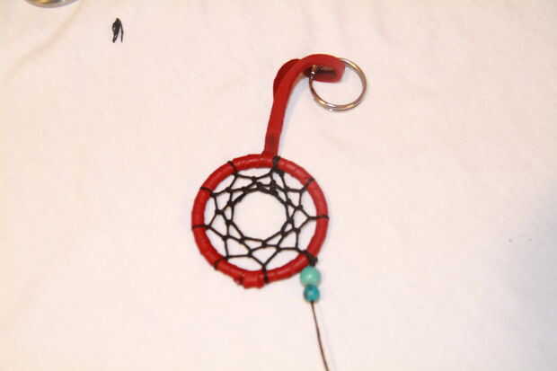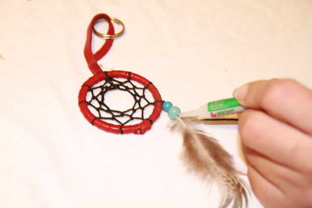 3. ahora la base de la pluma de la pluma y de la cuña en el cuarto restante en el agujero de la perla. Fijar con una gota de pegamento y corte el hilo restante.