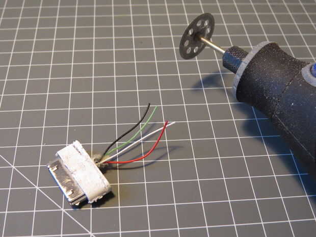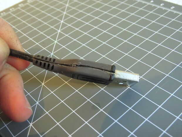 Utilizar una dremel con un disco de corte plástico corte Montage plástico, entonces utiliza un cuchillo y unas tijeras para pelar el cable.
