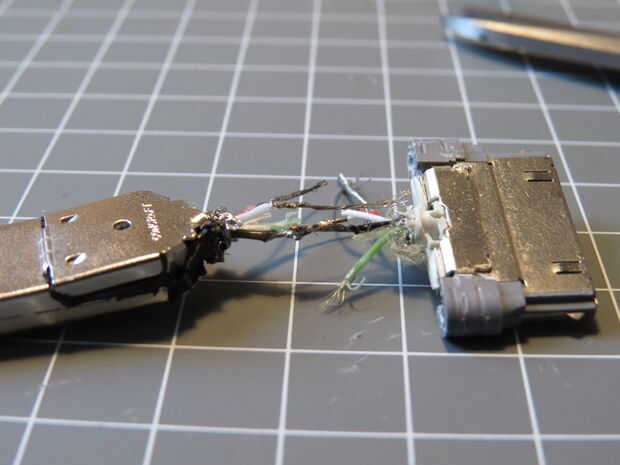 Esto es donde buenas habilidades de soldaduras va a venir bien. Coinciden cada cable con su color correspondiente en el otro enchufe y empezar a soldarlos juntos. Puede cada cable hasta la parte inferior de la tira y cortar los cables para que estén alrededor 1-1.5 cm de largo. Si usted piensa que puede soldarlos todavía si son aún más cortos, seguir adelante.