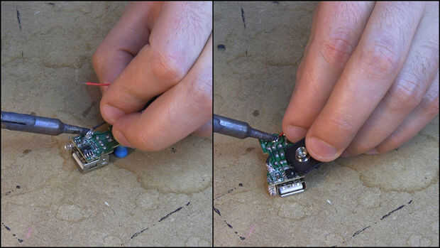 Tomé aparte del USB cargador del coche y soldar conectores de batería a él.