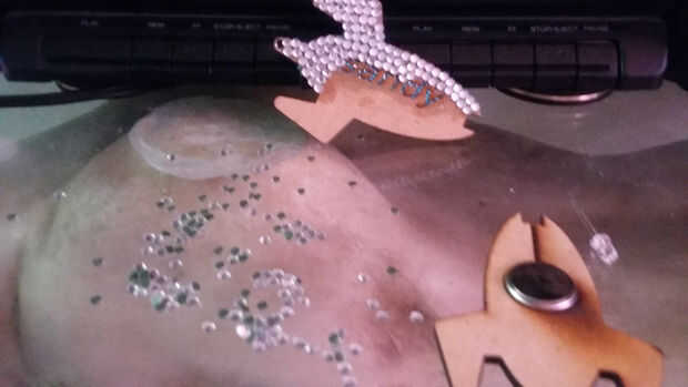 Decorando el llavero lampara ambas caras.