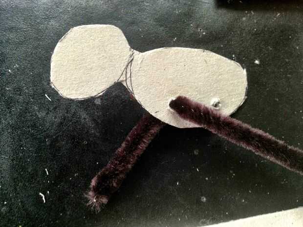 Primero, dibujé una imagen del llavero que me imaginaba. Luego, corté el cuerpo de las ovejas de cartón. Después de eso, asomó dos agujeros en el cuerpo para las patas de las ovejas. Los limpiadores de pipa más adelante será empujados a través de estos agujeros. Asegúrese de que los limpiapipas son lo suficientemente largos, que aún pueden cortarlas después.