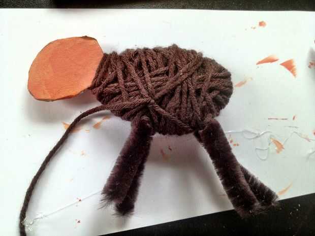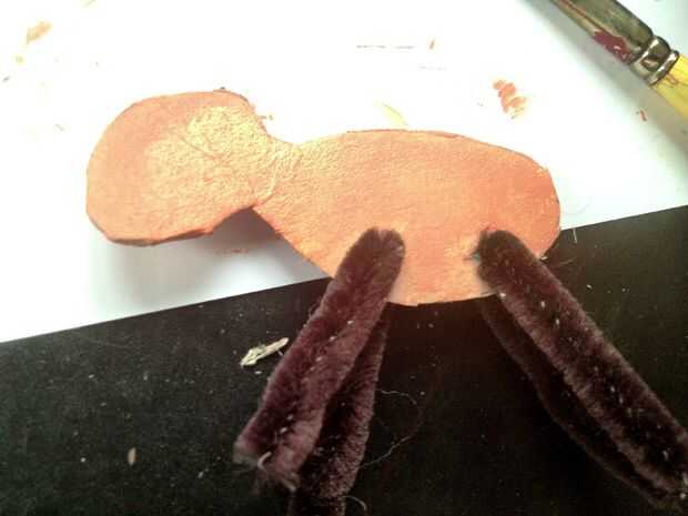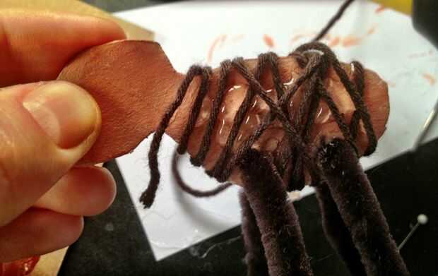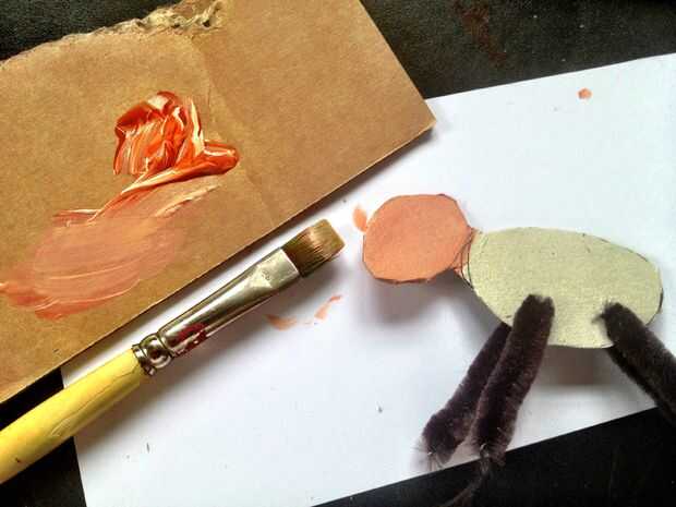Ahora he pintado el cuerpo de cartón con una mezcla de blanco y marrón. Luego, coloco una pequeña gota de pegamento en el espacio los limpiapipas y el cuerpo de cartón. A continuación, poner un hacks de pegamento caliente en el cuerpo y comenzó a envolver el hilo alrededor de él. Cuando el cuerpo entero fue cubierto, até al final a uno de los hilos hilados (imagen 4 en este paso).