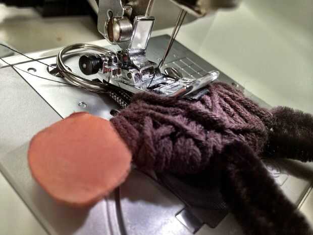 Después de eso, puse otra capa de pegamento caliente en el cuerpo para cubrir la raya negra con otra capa de lana.