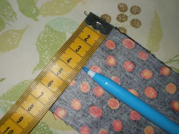 d. medir el punto medio del extremo de 6cm de tela de entretela fusionada y marque con un marcador borrable de la tela.