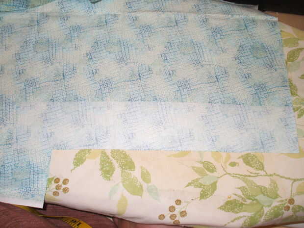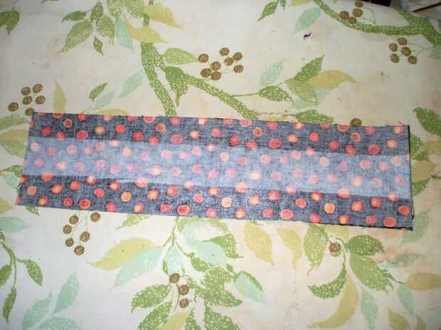 b. Coloque el 6cmx corta 35 cm entretela al revés de la tela, el lado brillante hacia abajo como se muestra en la fotografía.