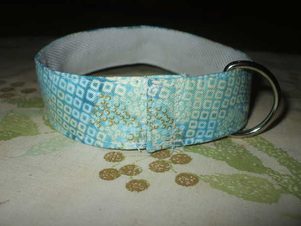 d. Deslice el anillo en D para que sea sólo sobre el plegado y cosido 1 cm. doble lazo sobre en anillo y apriete juntos.