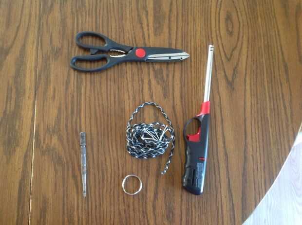 cómo hacer un llavero de nudo de la doble hélice (ADN).Paso 1: Paso 1 Lo primero que debe hacer es reunir los suministros. Se necesita:1. un encendedor2. algo para cortar el paracord3. un dispositivo de medición4. el paracord que desea utilizarPaso 2