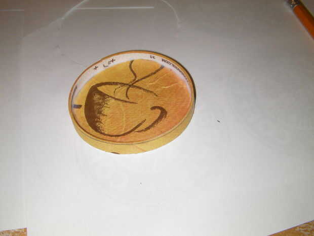 Una vez imagen se corta y se ajusta bien en el círculo. Empújelo. Mi cuadro perfectamente cabe y probablemente permanecería en su lugar, pero sólo para asegurarse añadir pegamento alrededor de él.