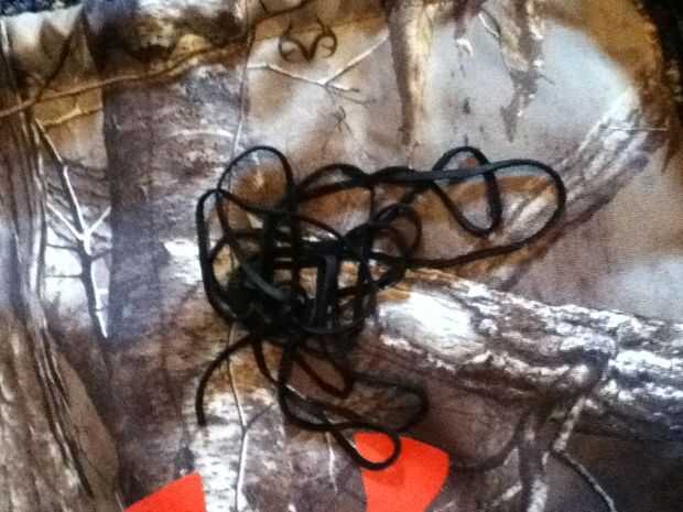 utilicé cuero para sostener las llaves en la cornamenta sólo tiene que utilizar un taladro o si tu como yo y no tiene un uso una punta de grabador y luego ejecuta el cuero por el agujero y hacer un nudo después de agregar las claves