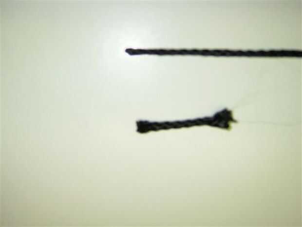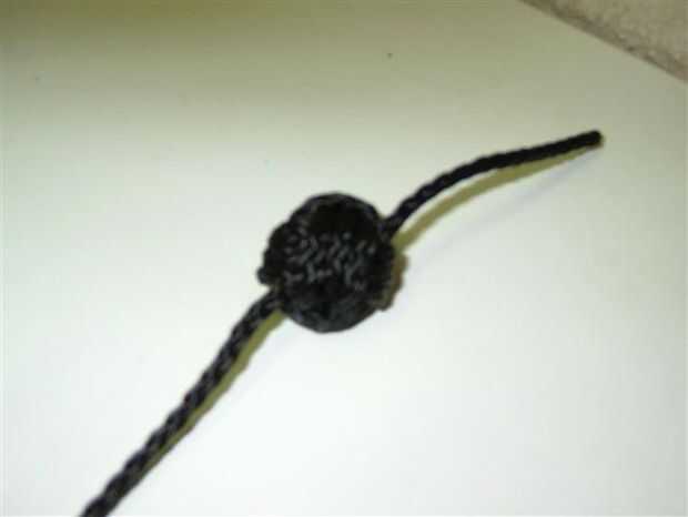 Una vez que se corta el cordón, usé un encendedor para derretir las puntas para evitar se deshilache. Una vez hecho esto comencé con un nudo de mono a incluir y sostener el peso de la cadena.