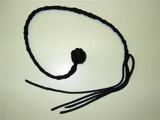 Una vez que se hizo el nudo de la pared había anudada a dos de los cuatro restantes punta juntos. Fue acortar las dos puntas restantes y oculto en el nudo de la pared.