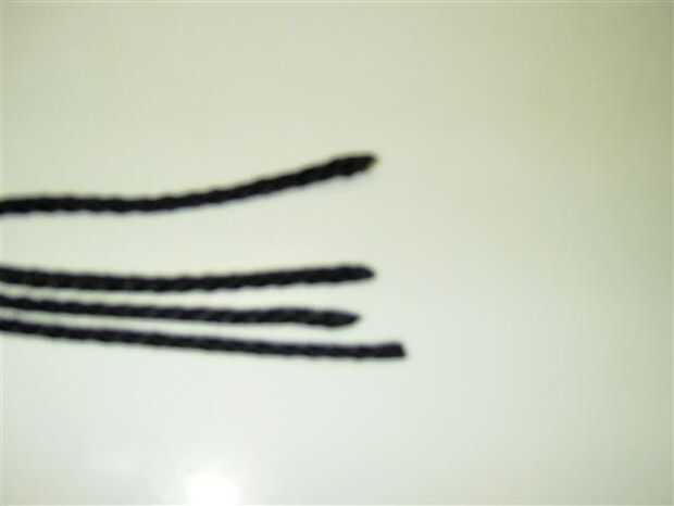 Una vez que se hace el puño del mono y se inserta un segundo cable, usted puede notar que hay cuatro extremos para ser trenzados juntos. Hay algunas opciones para elegir pero de desde un punto de la facilidad y el tiempo, decidí hacer un trenzado similar a una trenza de pelo. No sé wat es llamar pero de todas formas podrías hacer una trenza diferente o un sinnet portugués.