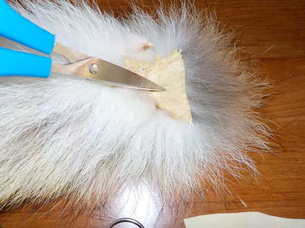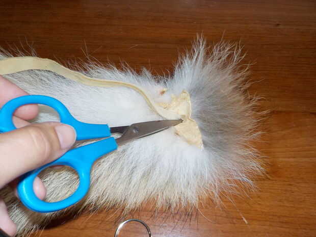 Invierta su cola para la parte inferior de la piel quede frente a usted. Parte de los pelos para exponer la piel completamente y use sus tijeras para perforar un agujero pequeño, cerca de 1/2" hacia abajo desde la parte superior de la cola.
