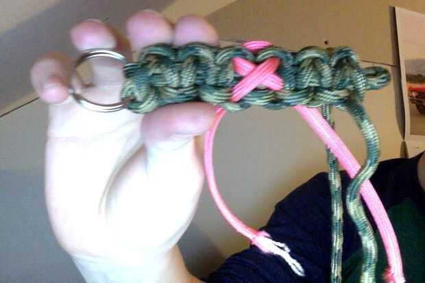 atar la otra mitad del nudo y luego un nudo más completo. puede dejar el lazo pequeño al final si quieres. Para terminar el llavero sólo corte el cable y derretir los extremos. PRECAUCIÓN de nylon fundida es caliente.