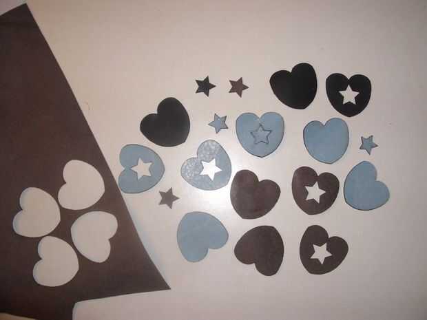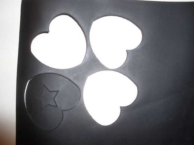 Cuando estás feliz de que la corte atraviesa totalmente el cuero sin ser demasiado de gran alcance lento (que pueda causar carbonización excesiva), abra el archivo PDF y enviarlo a la corte. No tendrá ningún tiempo en absoluto para cortar las formas 4 corazón y pequeñas estrellas en 2 de ellos y luego repetirlo en la otra pieza de cuero. Mantenga las sobras, necesitará cortar pequeñas tiras para colocar los anillos de split.