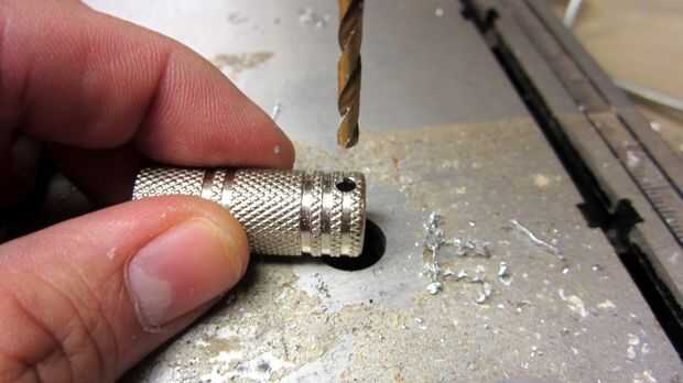 Utilizando el taladro, perfore un pequeño agujero a través de conector de sonido lo suficientemente grande para el llavero que quepa.