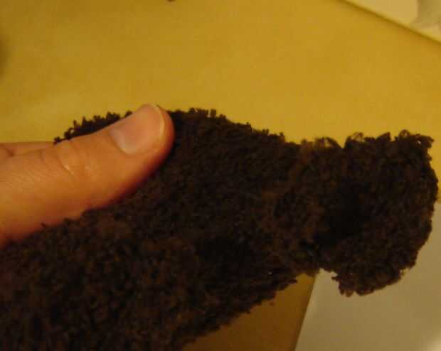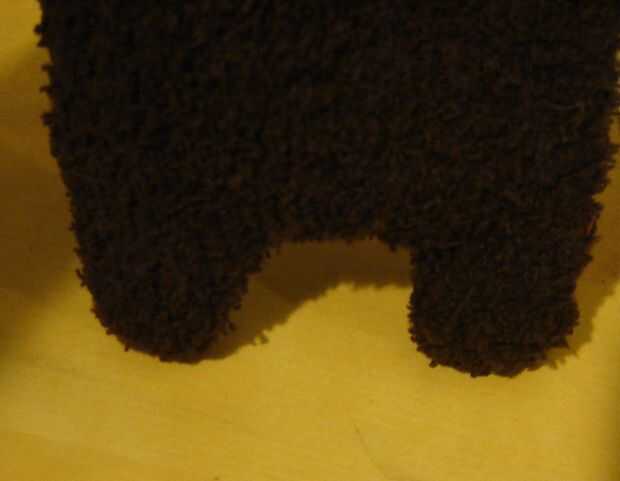 • Cortar dos pequeñas (3X3cm) los calcetines, estos será la parte inferior de sus pies, coser las piezas en la apertura de sus pies. (Otra vez, utilicé la puntada del azote).