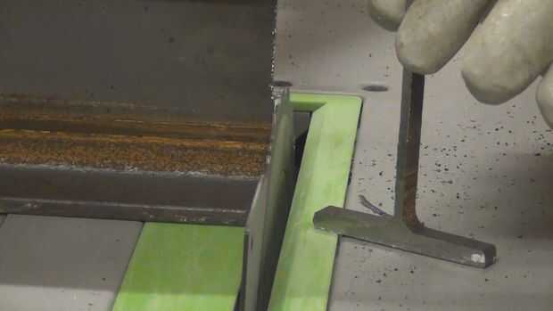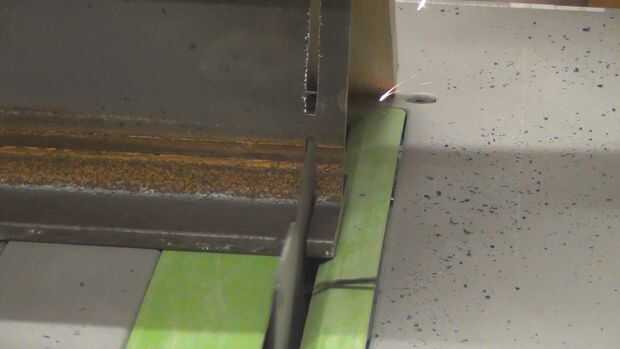 Utilicé una sierra de mesa, con una cuchilla (TCT) para madera y metal de punta de carburo de tungsteno. Un regular disco TCT harán frente probablemente está bien, aunque luego no será muy buena para cortar madera! I reducir poco a poco, con poca profundidad pasa a través de la parte superior e inferior de la 'I' y luego celebró la viga sobre la hoja y levantó lentamente para terminar el corte.