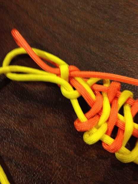 esto es un derivado del llavero de nudo de caja que aprendí un par de décadas atrás de un amigo en el ejército. Así, si ya sabes cómo hacer el nudo de la caja, puede saltar hacia abajo de una manera y ponerse en marcha. Si este es su primer juego, va