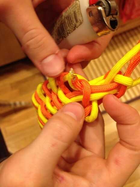 estos chicos se ven muy bien en mochilas y son divertidos para jugar con.Paso 1: fuentes de Necesita 2 diferentes colores de retazos de paracord cada uno sobre un pie, un encendedor, tijera y llavero.Paso 2: Quemar cuerda Necesita para asegurarse de