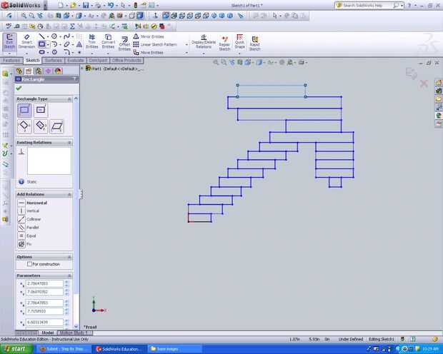 paso 1. Abra un croquis en el plano frontal y a partir del origen obtenga la forma áspera de la piqueta de Minecraft usando la herramienta rectángulo. Sugiero usar una imagen de Google imágenes como referencia.