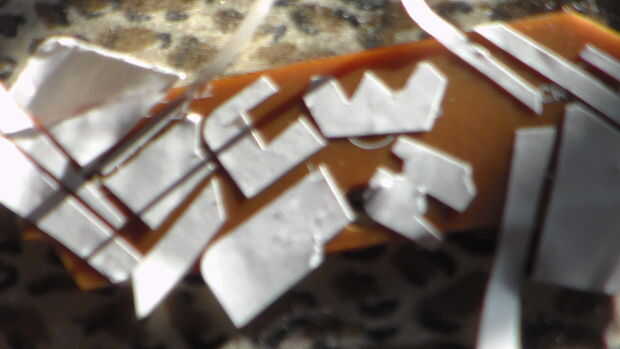 nuestro trabajo ahora es en la segunda parte así que recortamos parte de papel pegajoso pegado a la forma del circuito