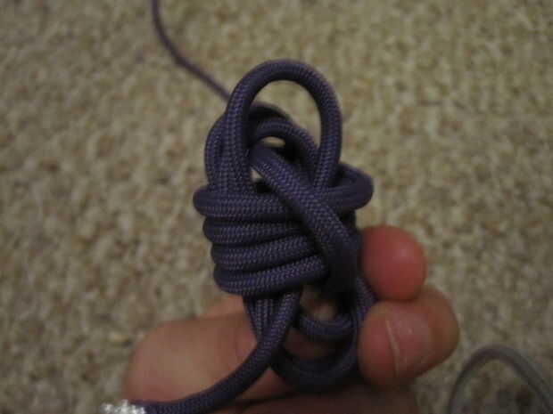 la práctica común para la fabricación de un conector de llavero paracord es un nudo simple. Sin embargo, después de probar esto, pronto noté que el nudo de grande y voluminoso mantiene sobresalen en ángulos extraños y pusiera en el camino al intentar