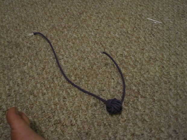 la práctica común para la fabricación de un conector de llavero paracord es un nudo simple. Sin embargo, después de probar esto, pronto noté que el nudo de grande y voluminoso mantiene sobresalen en ángulos extraños y pusiera en el camino al intentar