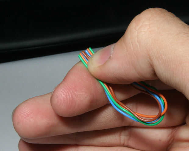con un par de tijeras, corte la punta de los cables en línea recta.