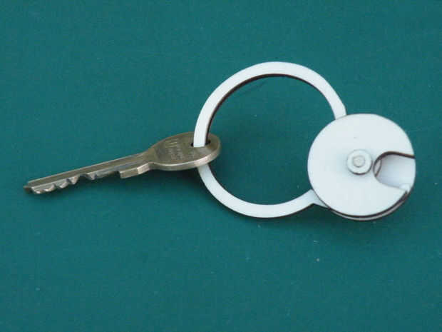 - Gire la llave y los discos juntos y el final del principal lazo con el hilo en el orificio de la llave.