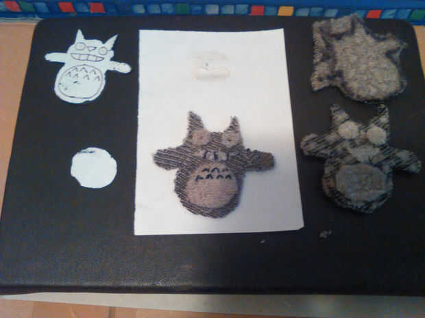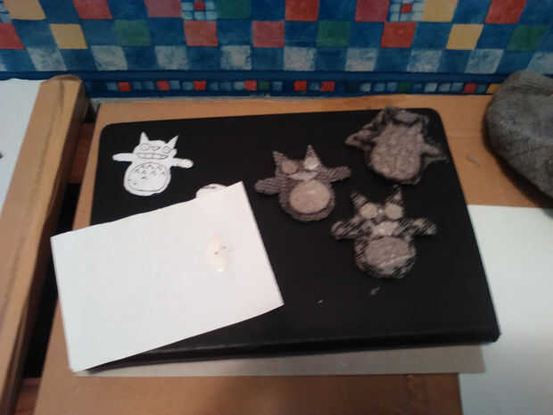 Pegué los ojos, boca y pecho hasta el cuerpo sólo con un poco de pegamento blanco para mantenerlas en su lugar para que no se movieron mientras era coser sobre ellos. El exterior del calcetín que solía para ser la parte exterior del cuerpo y voltea a la tela para que el interior del calcetín era el exterior de los ojos, boca y pecho para darle un contraste. Una vez seco el pegamento añadí los detalles a la cara de Totoro con un hilo. Para los ojos solo cosí hacia adelante y hacia atrás alrededor del centro de los ojos hasta que hizo un punto sobre el tamaño correcto. Los dientes y los galones eran dos bucles para cada línea, que hizo sobre el tamaño correcto. Si usted ha utilizado hilo de bordar probablemente podría hacerlo con una puntada cada que haría mucho más rápido.