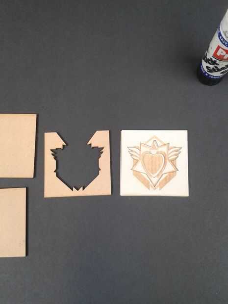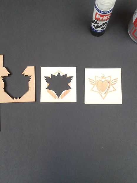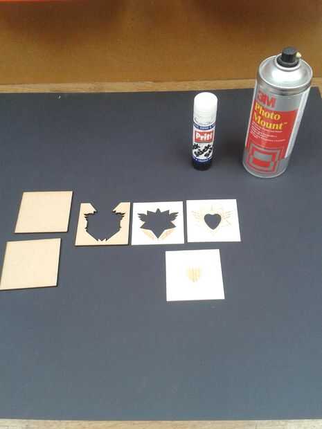 Una vez que se recortan las piezas, montar el molde utilizando cualquier técnica que quiera usando un palillo del pegamento, Spray Mount, cinta adhesiva de doble cara o con nada (esto funciona, aunque hay una mayor probabilidad de estaño que se filtra entre las capas si es incorrecta y hay una mayor probabilidad de que no puede alinear muy bien).