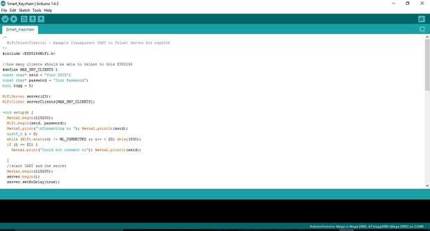 He hecho la programación de elegante llavero en Arduino. Programa es muy simple, que solo he editado el código de ejemplo de Telnet a Serial para Esp8266.